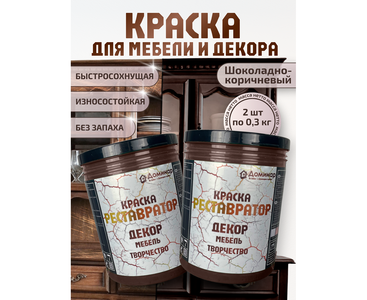 Краска для мебели без запаха быстросохнущая коричневая (шоколадная) 2 шт